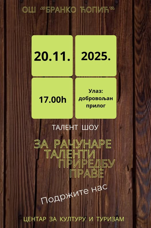 Наша школа је препознатљива кроз промоцију талената којима омогућавамо даљи развој у свим областима. Једна од таквих прилика је и приредба “Талент шоу” коју организујемо поводом 20.новембра, Међународног дана дјетета. На приједлог Савјета ученика, прикупљена средства ће бити усмјерена за куповину рачунара који ће се користити за наставни предмет Дигитални свијет. Позивамо вас да подржите наше таленте!